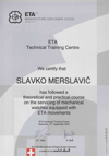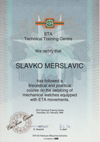 Leta 2000 sem opravil mojstrski izpit. Diploma skupaj s certifikati o vsakoletnem strokovnem usposabljanju v Švici, me vedno znova opozarja, da sem svoje mladostne sanje uresničil. Predvsem pa mi to vsak dan znova govore moje prijateljice ure – ti majhni, natančni, vedno znova izpopolnjevani čudeži, ki nam vztrajno kažejo čas.